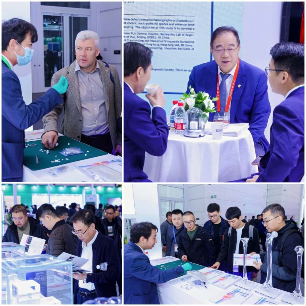 大会期间,精诚医学展台吸引了众多骨科专家、学者及临床医生到访交流,对博骼列®在创伤、矫形和骨肿瘤切除修复等领域的临床潜力给予高度评价,对其可降解、成骨强、操作便捷等优势表现出浓厚兴趣。